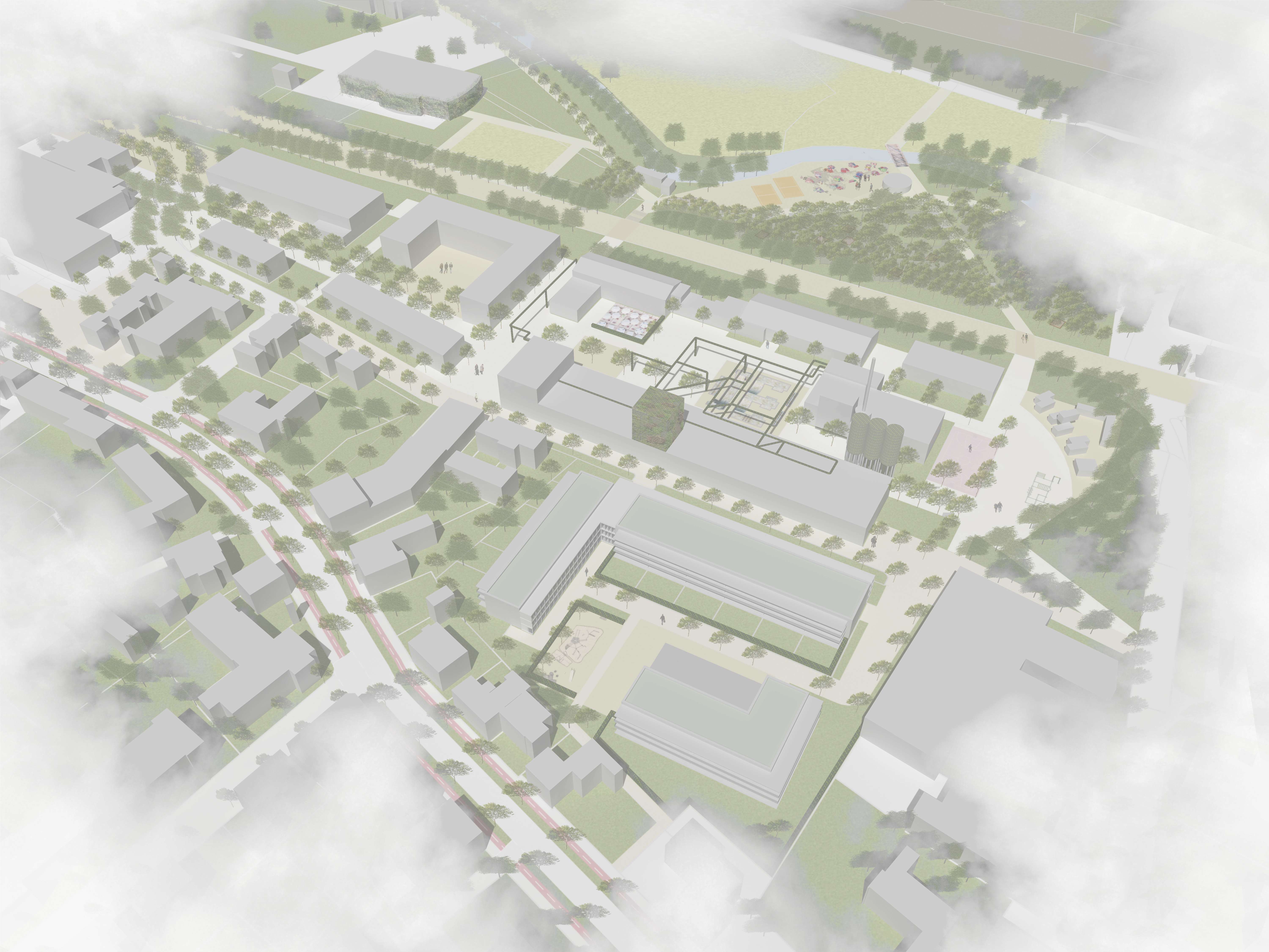 Das Szenario der Freizeit-Landschaft wurde besonders aufgrund der starken Integration lokaler Akteure positiv bewertet; im Rahmen der Synthese wird dieser Ansatz weiter vertieft. Es sollen bürger:innennahe Orte entstehen, welche die bestehenden Strukturen im Stadtteil aufgreifen. Auch das hohe Maß an Begrünung wird in die Synthese integriert. Statt flächendeckender Begrünung werden jedoch vorwiegend Elemente vorgesehen, welche sich auch städtebaulich in die Umgebung einfügen.